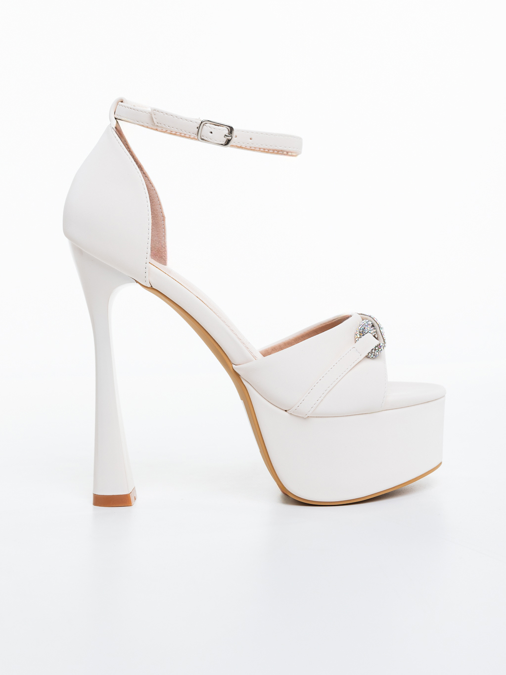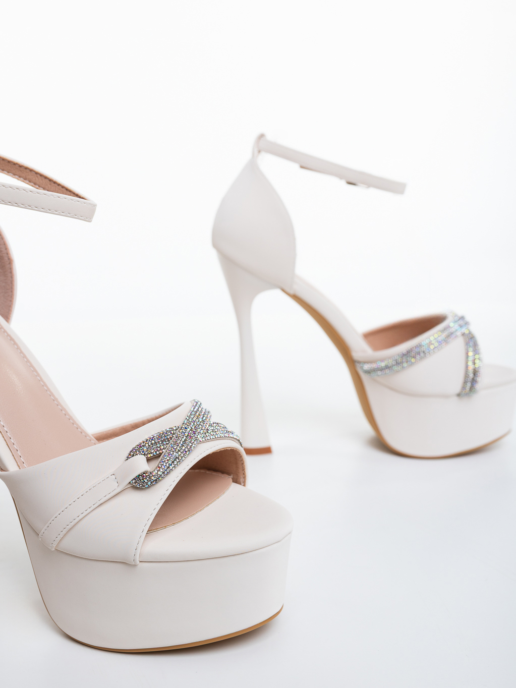 Sandale dama cu toc bej din piele ecologica Estaria - Detalii produs
