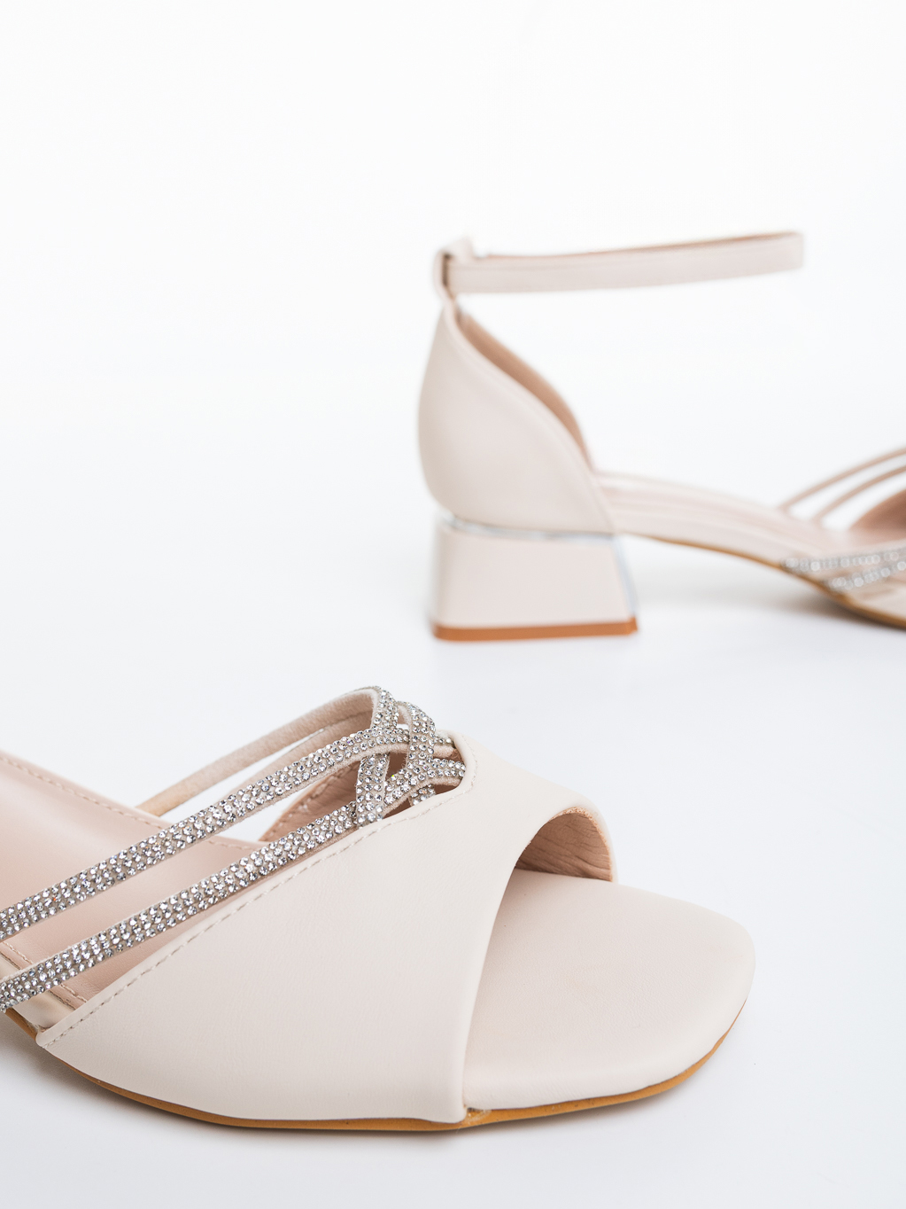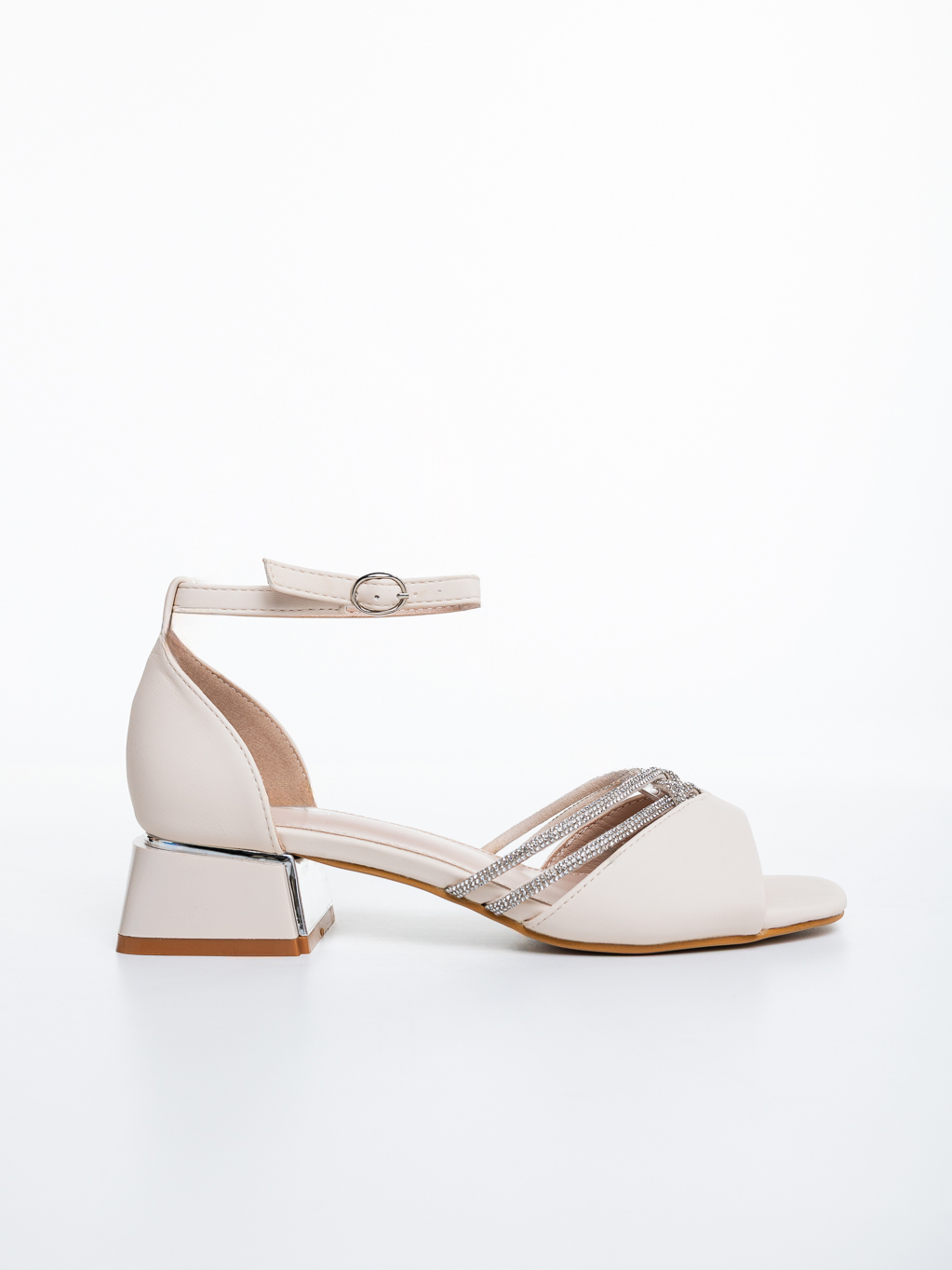 Sandale dama cu toc bej din piele ecologica Tenzana - Detalii produs