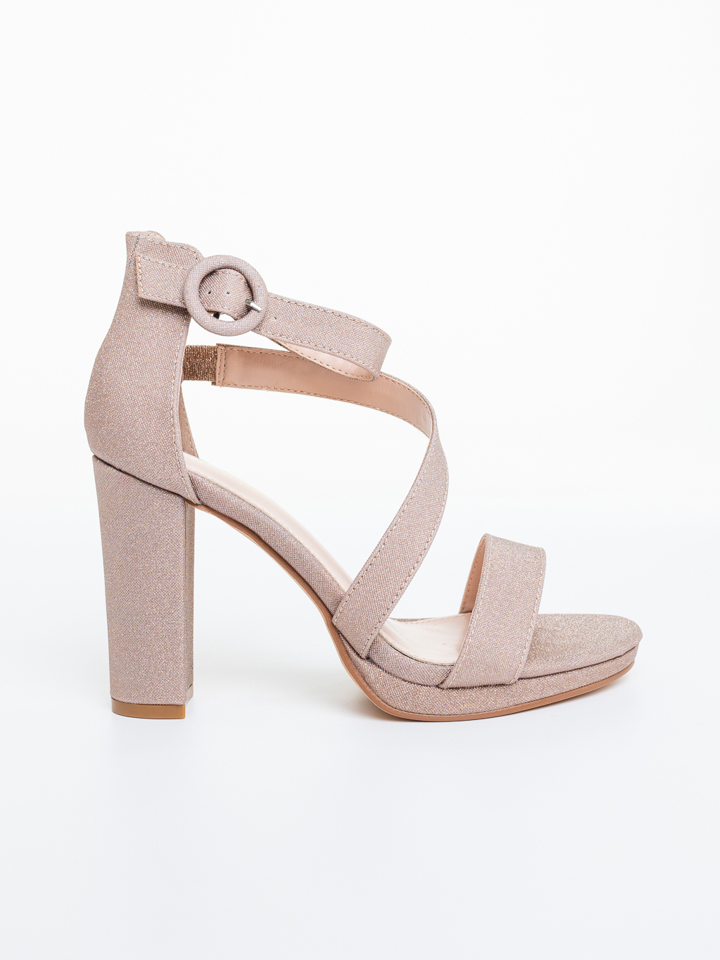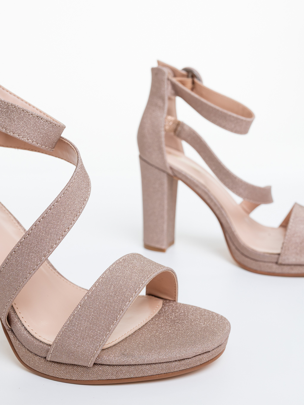 Sandale dama cu toc sampanie din material sintetic Oneta - Detalii produs