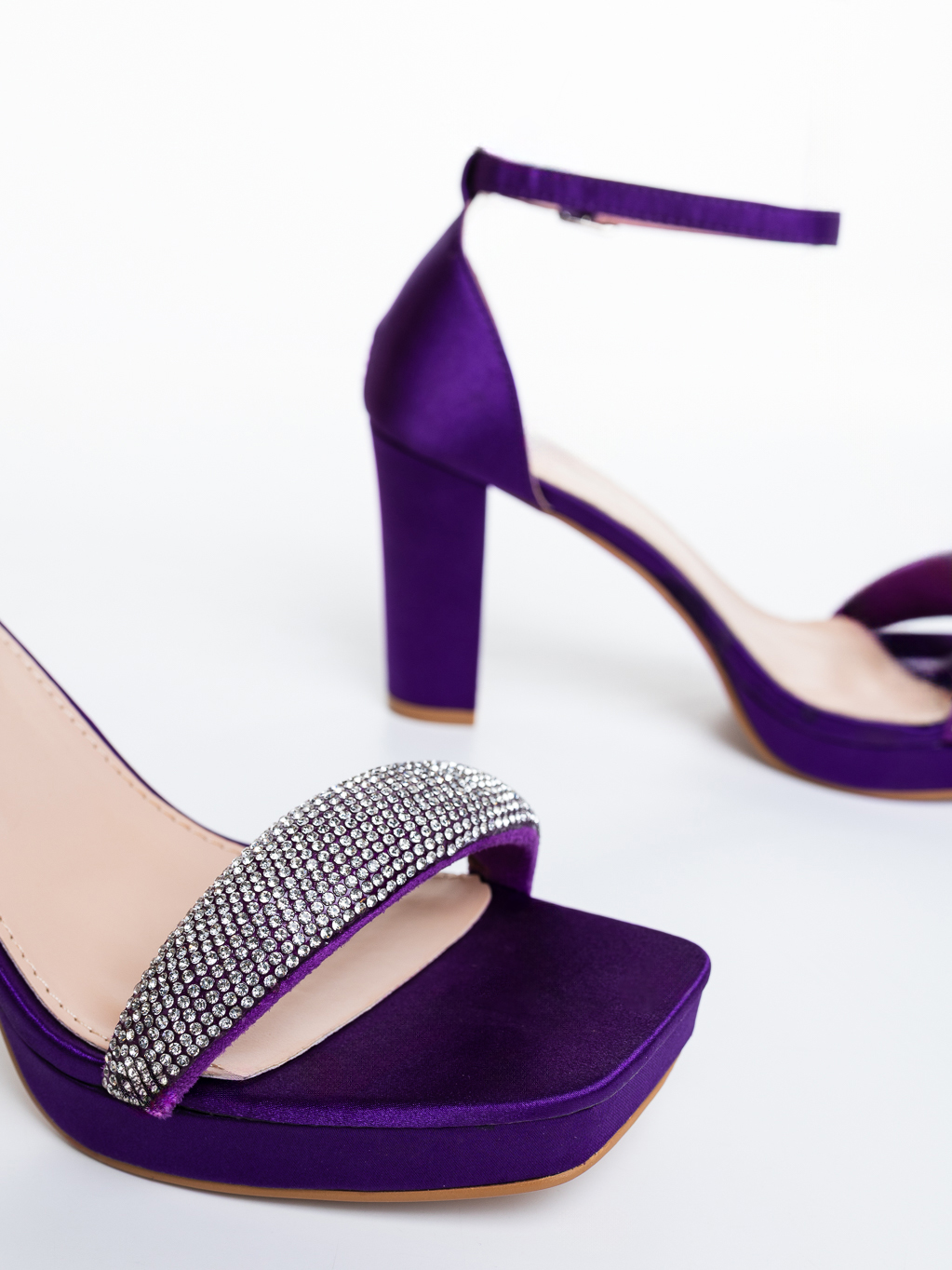 Sandale dama cu toc mov din material textil Menara - Detalii produs