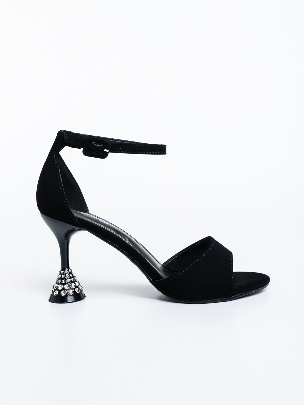 Sandale dama cu toc negre din material textil Casara - Detalii produs