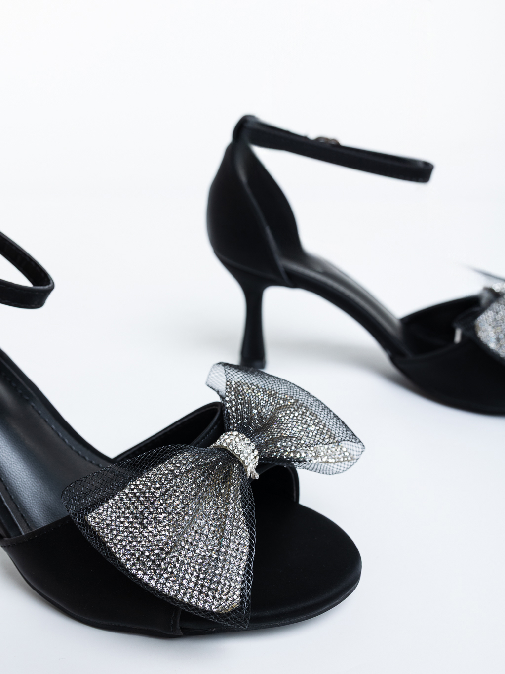 Sandale dama cu toc negre din material textil Cavana - Detalii produs