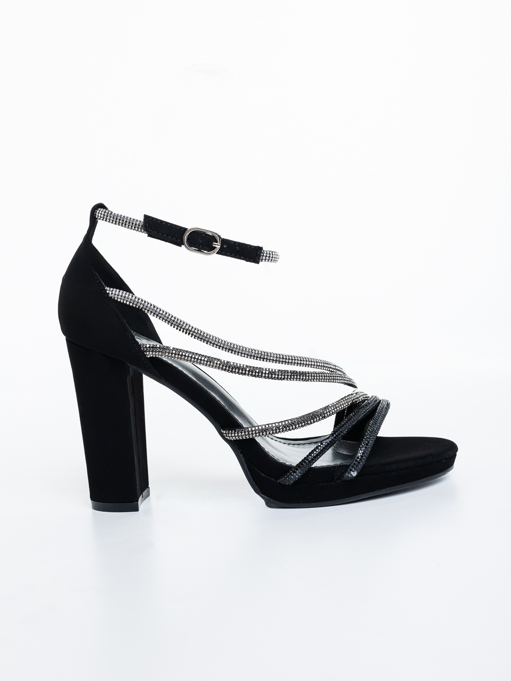 Sandale dama cu toc negre din material textil cu strasuri albe si negre Ronia - Alege ce ti se potriveste si remarca-te