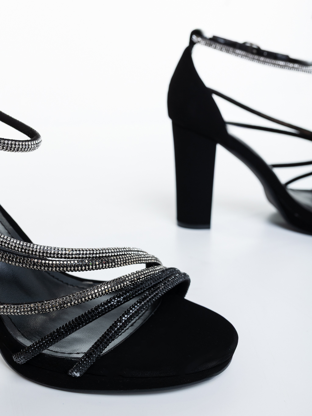 Sandale dama cu toc negre din material textil cu strasuri albe si negre Ronia - Detalii produs