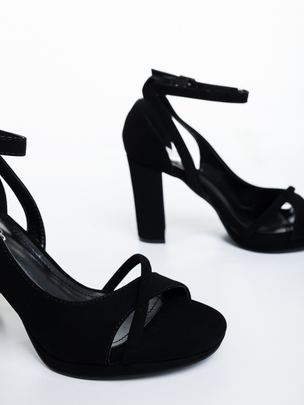 Sandale dama cu toc negre din material textil Edevia - Detalii produs