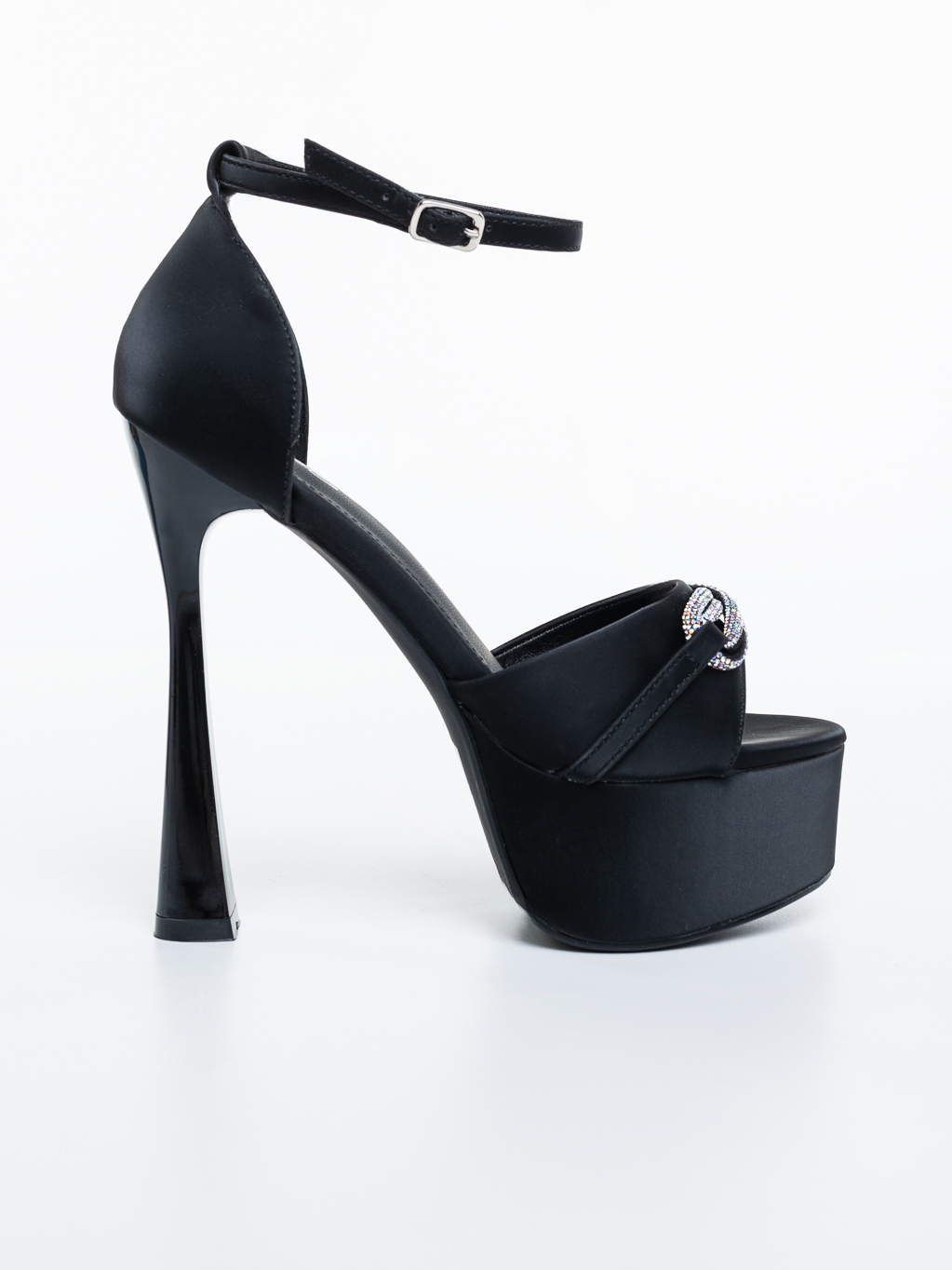 Sandale dama cu toc negre din material textil Estaria - Detalii produs