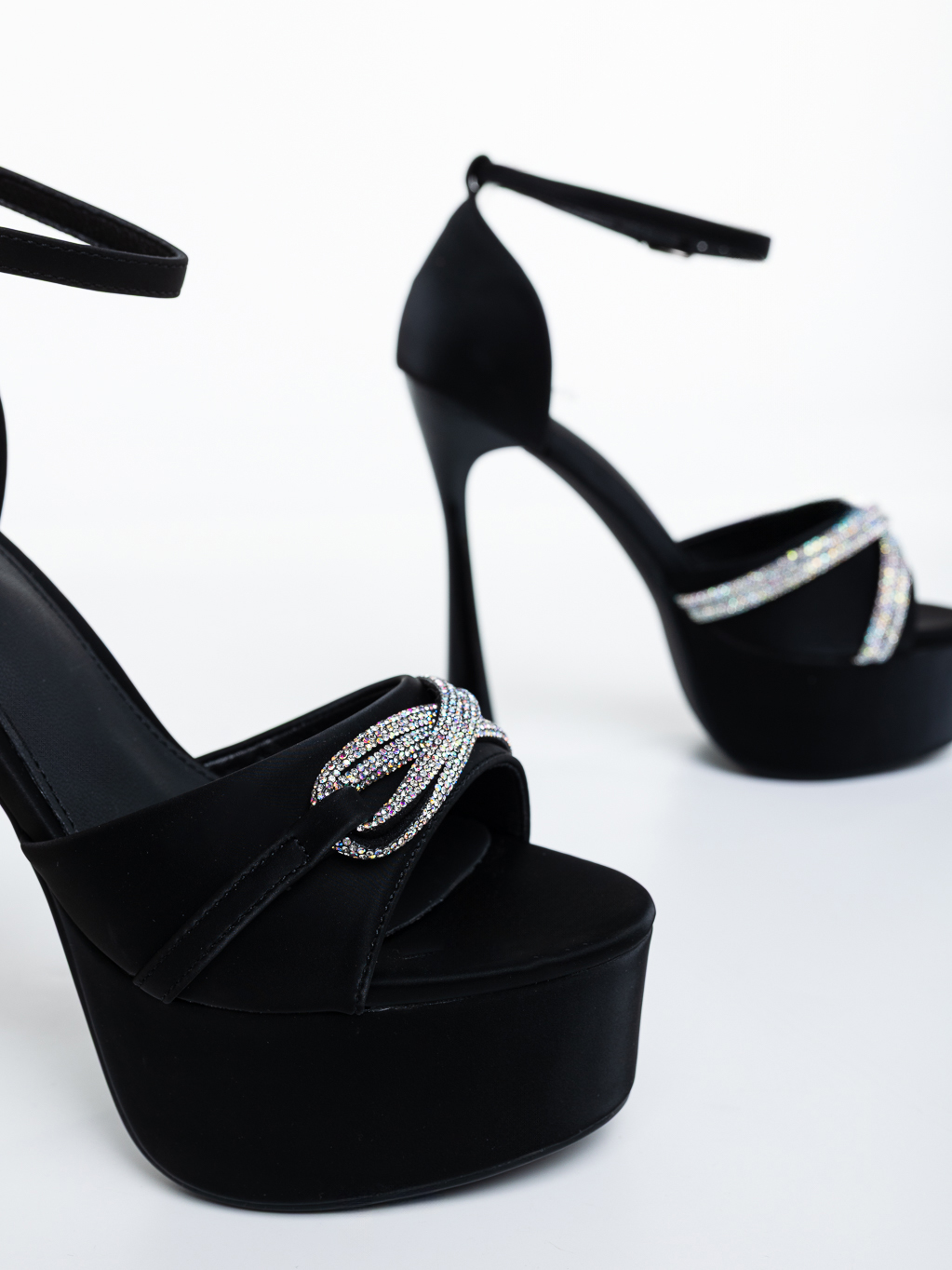 Sandale dama cu toc negre din material textil Estaria - Alege ce ti se potriveste si remarca-te