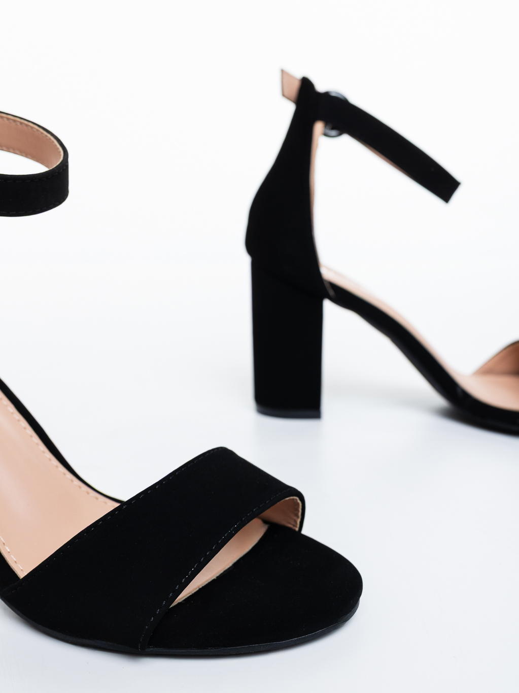 Sandale dama cu toc negre din material textil Janiala - Detalii produs
