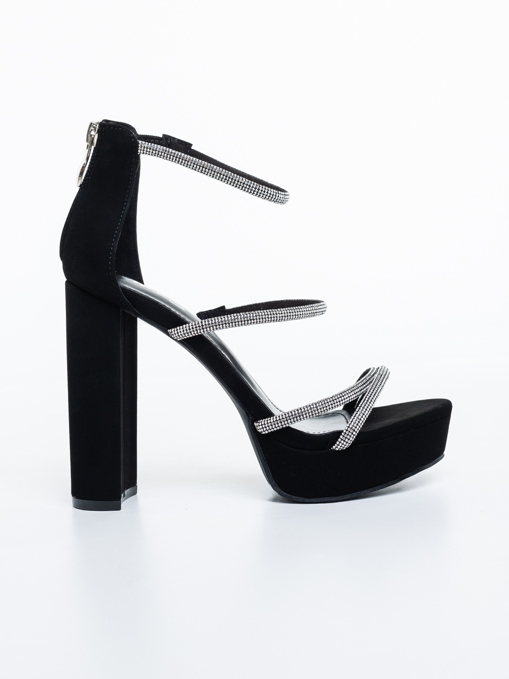 Sandale dama cu toc negre din material textil Lasera - Detalii produs