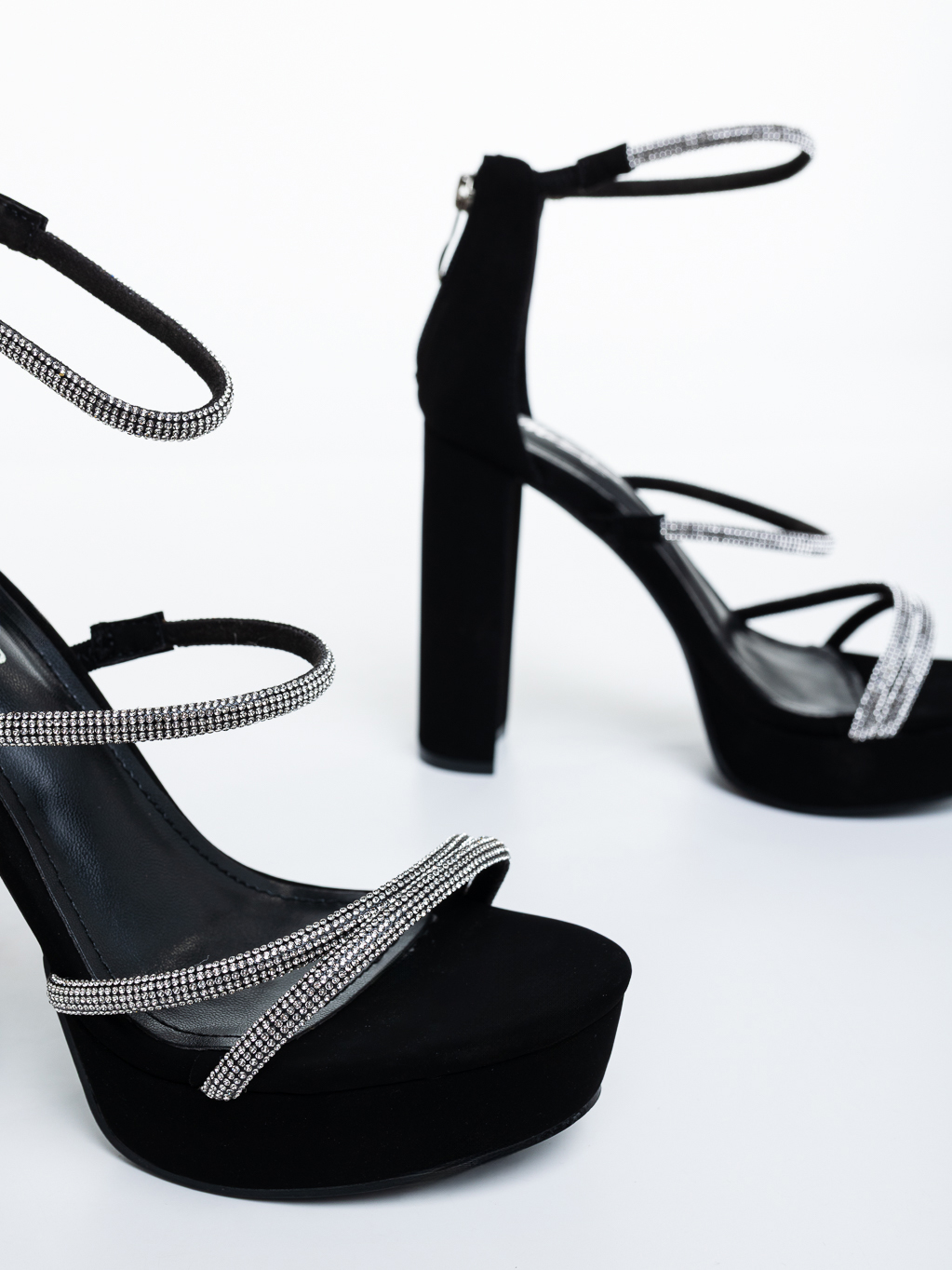 Sandale dama cu toc negre din material textil Lasera - Alege ce ti se potriveste si remarca-te