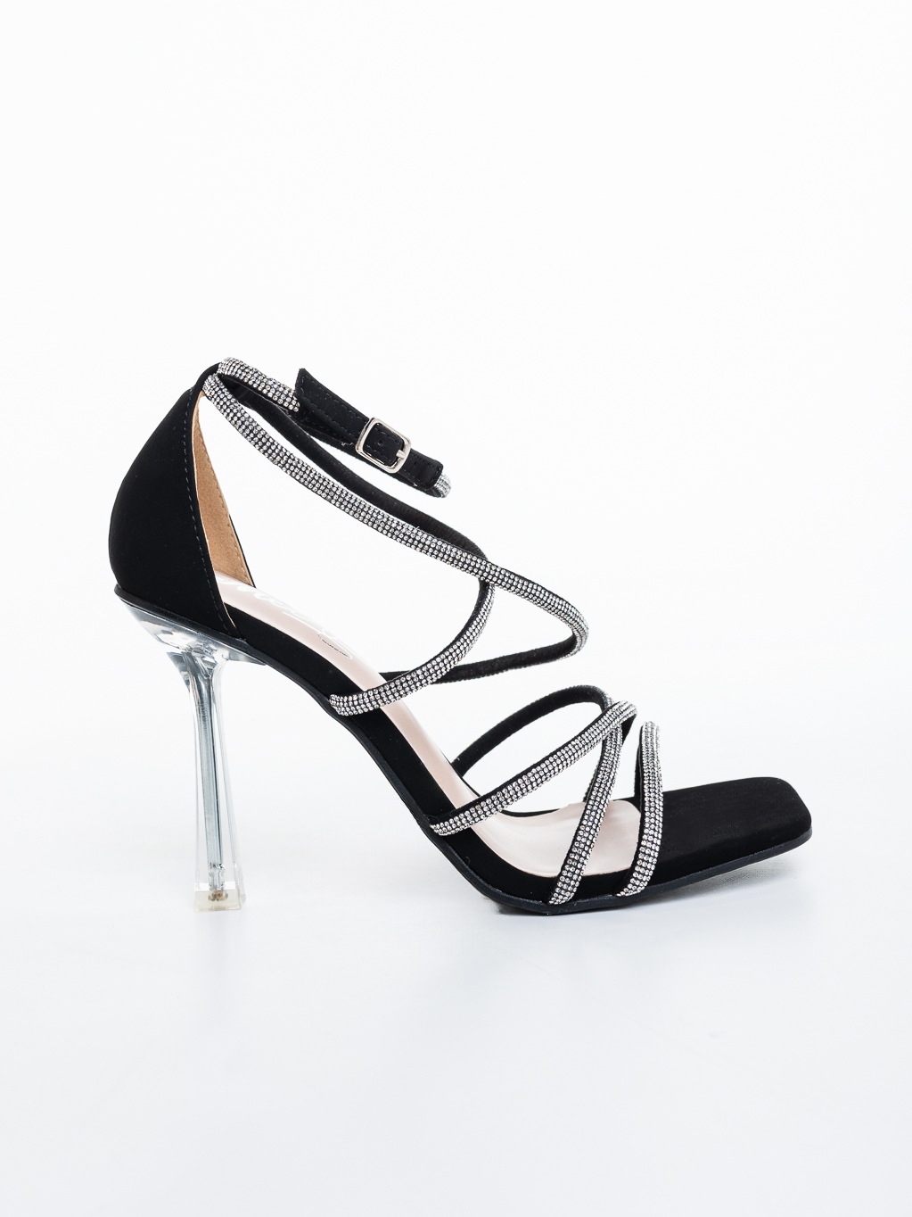 Sandale dama cu toc negre din material textil Latena - Alege ce ti se potriveste si remarca-te