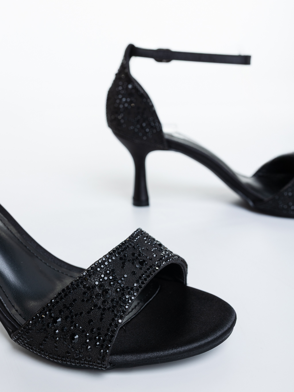 Sandale dama cu toc negre din material textil Latonia - Detalii produs