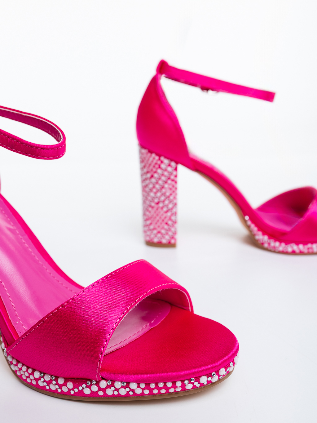 Sandale dama cu toc roz din material textil Selada - Alege ce ti se potriveste si remarca-te