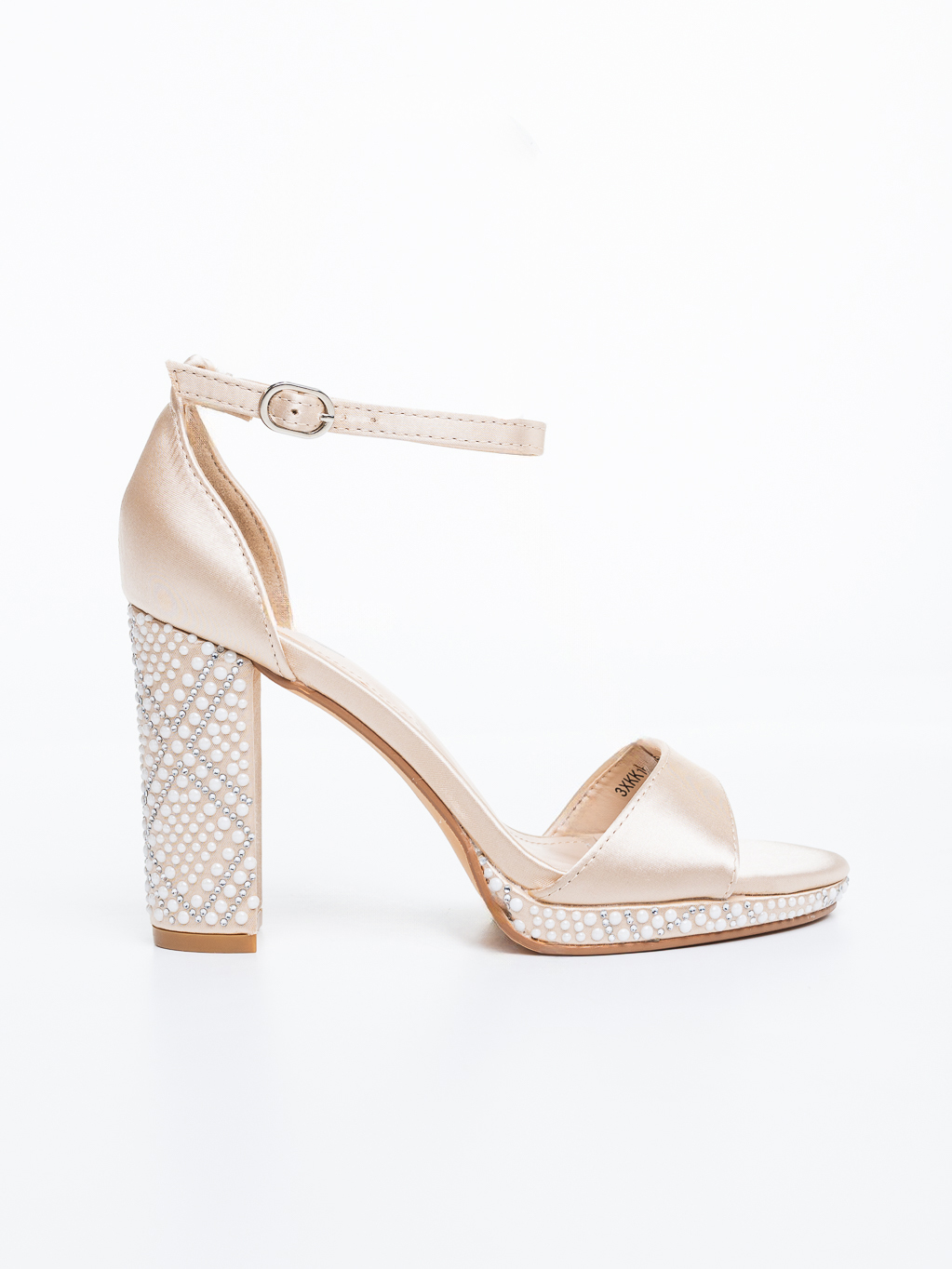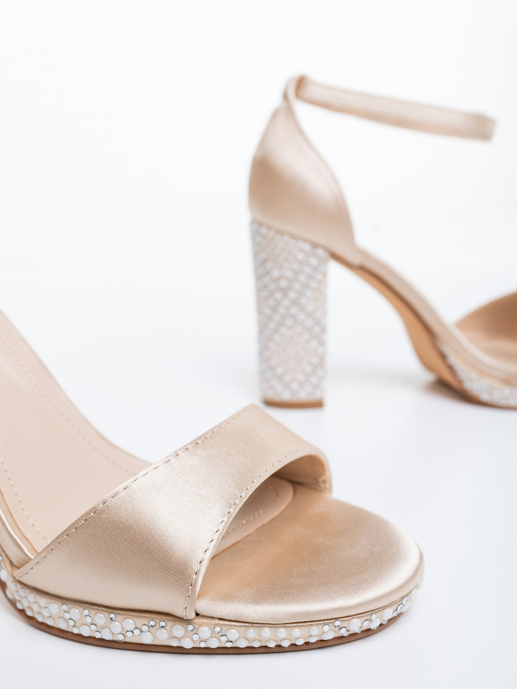 Sandale dama cu toc sampanie din material textil Selada - Detalii produs