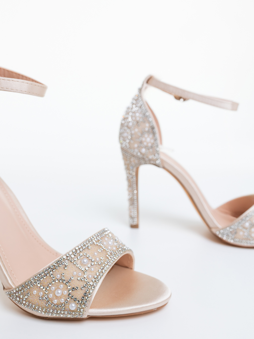 Sandale dama cu toc sampanie din material textil Mischa - Detalii produs