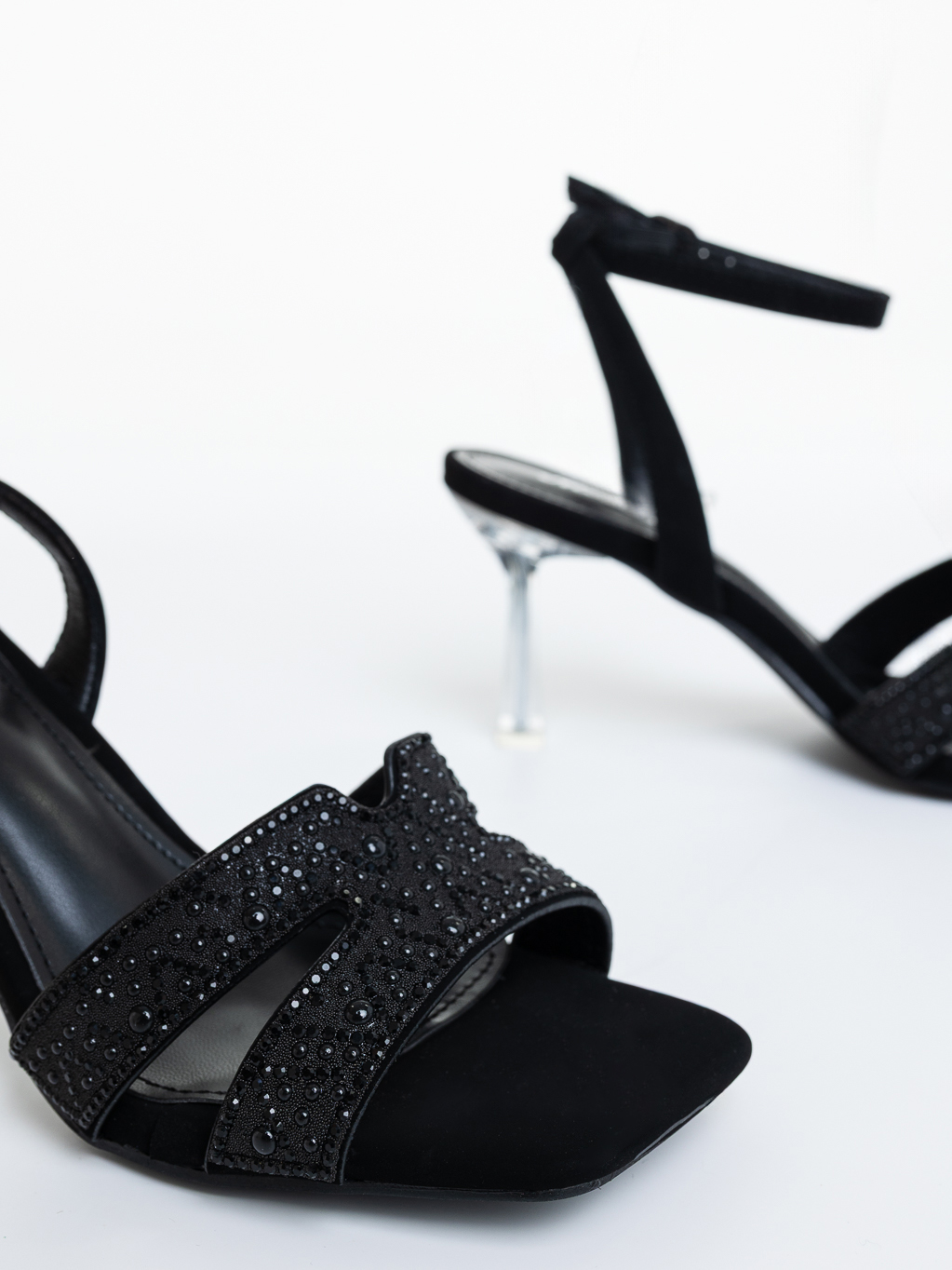 Sandale dama cu toc negre din material textil Kaya - Detalii produs