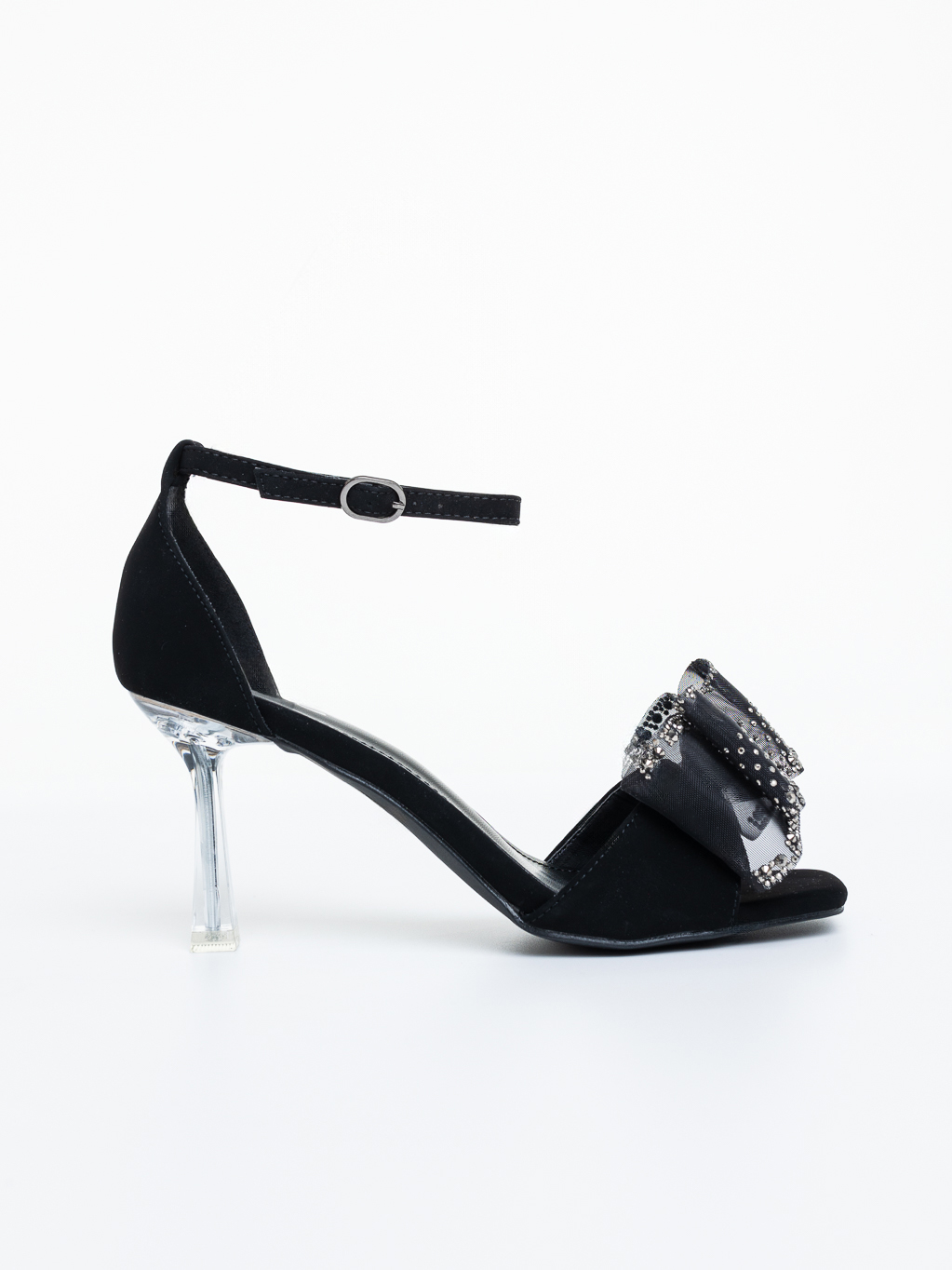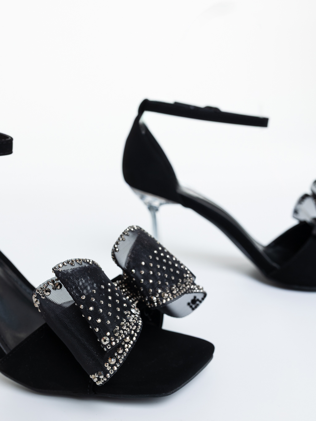 Sandale dama cu toc negre din material textil Lyanna - Detalii produs